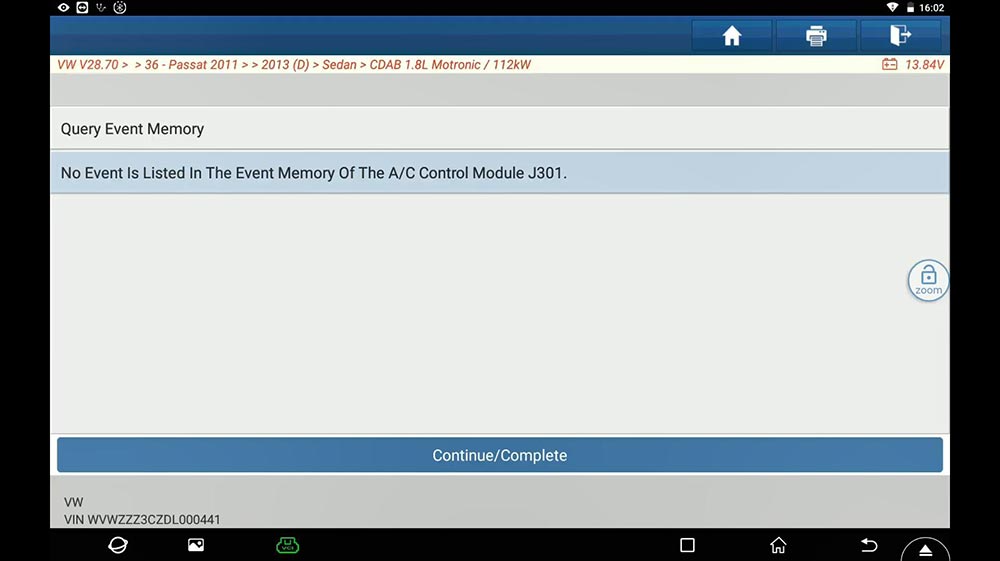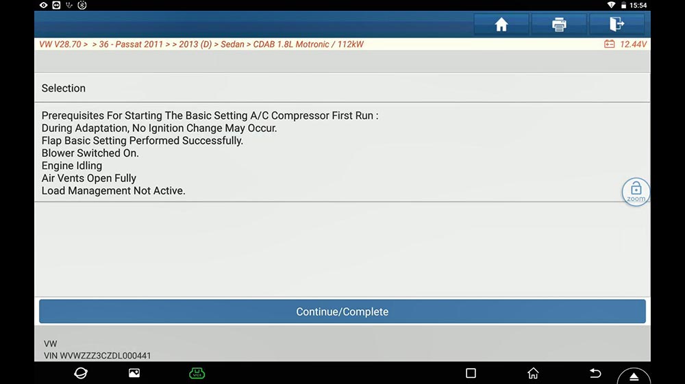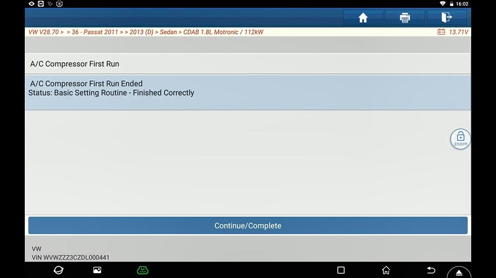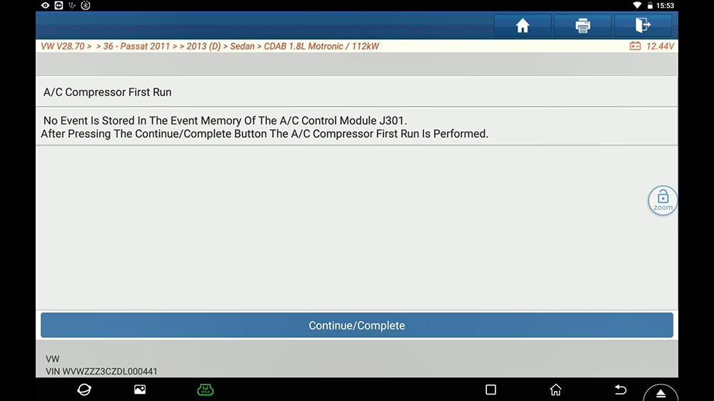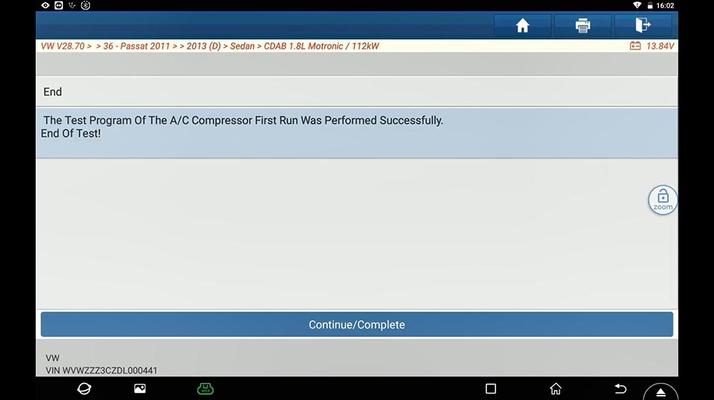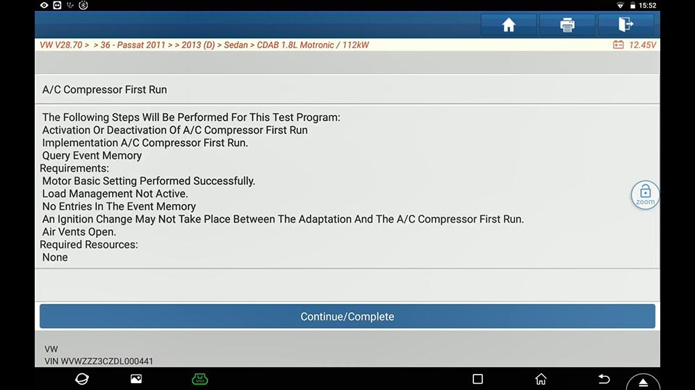 Launch X431 PAD V Tutorials: Perform the guided function — A/C compressor first run for VW PASSAT 2013.