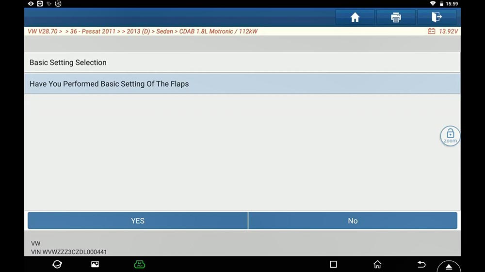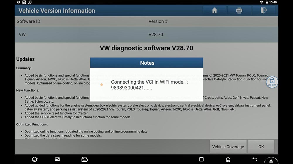 Select “Passat” and then “Vehicle version information”, connecting the VCI in Wifi mode…