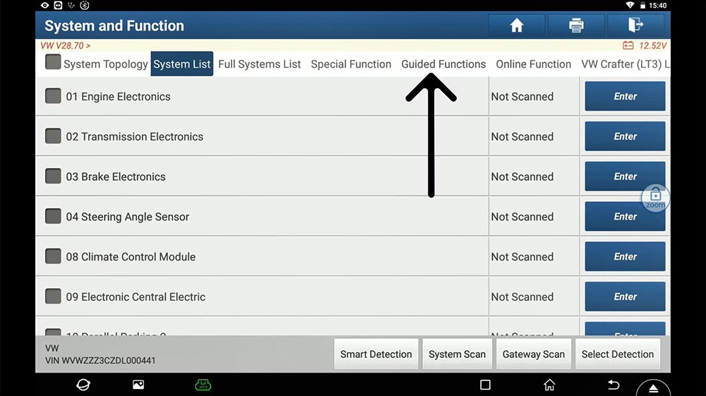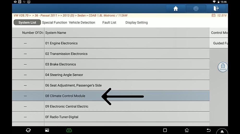 Enter “08 Climate Control Module” and then “Guided Function” at the right up corner.